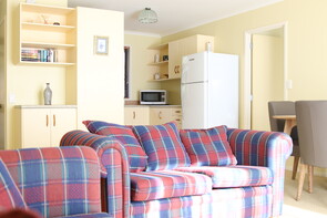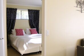 Karapiro apartment is accommodation in a garden setting. The spacious separate bedroom with ensuite, and walk-in wardrobe together with open plan kitchen, dining and living area is a great space to unwind and relax. There is a work station, free WiFi internet access and Freeview TV.